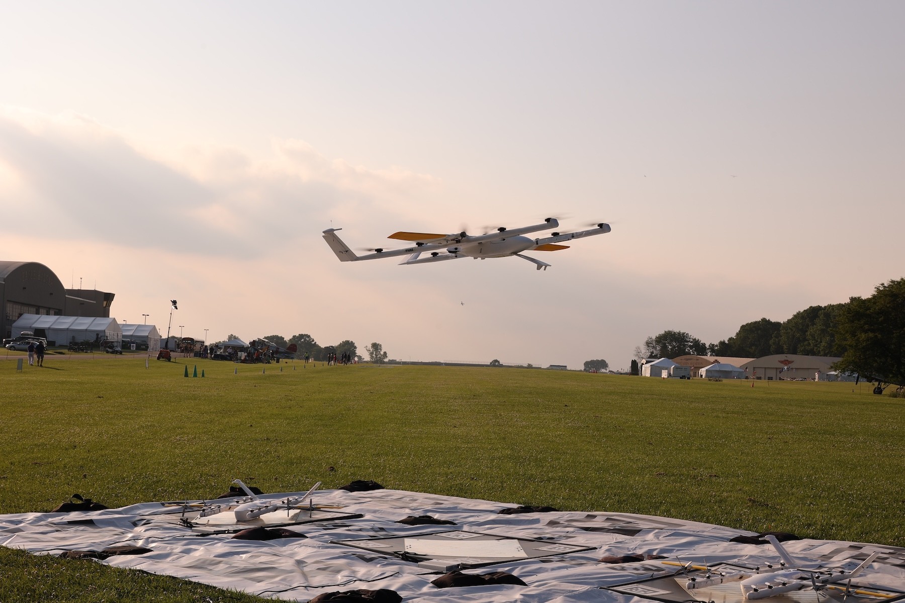 Flying during AirVenture means carefully coordinating airspace at the busiest airport in the world. To go big this year, Wing brought a mixed fleet, marking the first time Wing flew our larger aircraft at AirVenture.