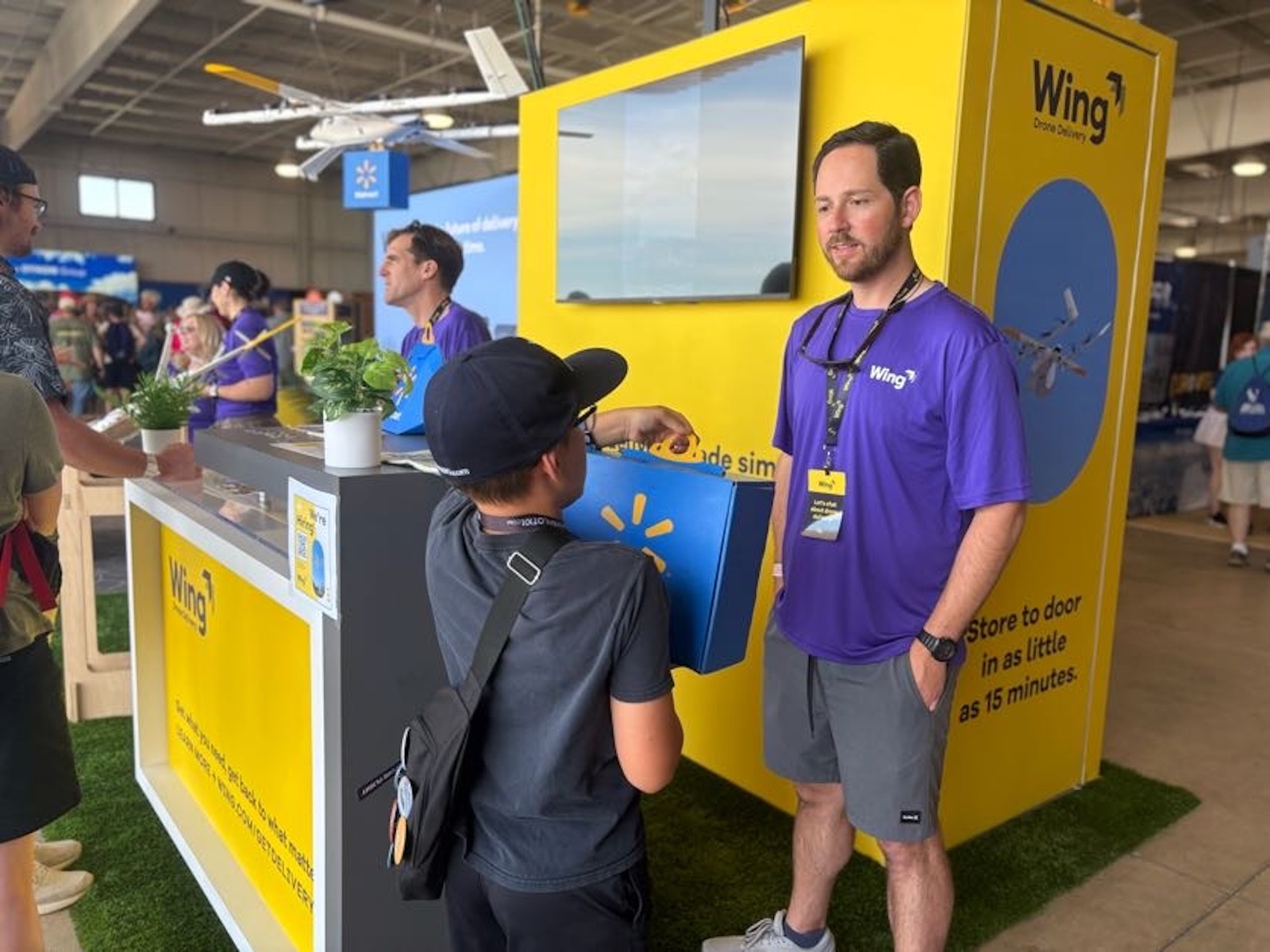 Beyond the flying field, Winglets talked with AirVenture attendees about our operations in the U.S. and beyond, along with inviting aviators to learn more about careers at Wing. Among our favorite conversations were with customers who regularly use Wing drone delivery. As one customer shared, “I'm so excited to see Wing here at AirVenture this year. We are customers in the DFW region and use the service all the time. We love using it for last minute or forgotten items and we're so excited to see you expanding!”